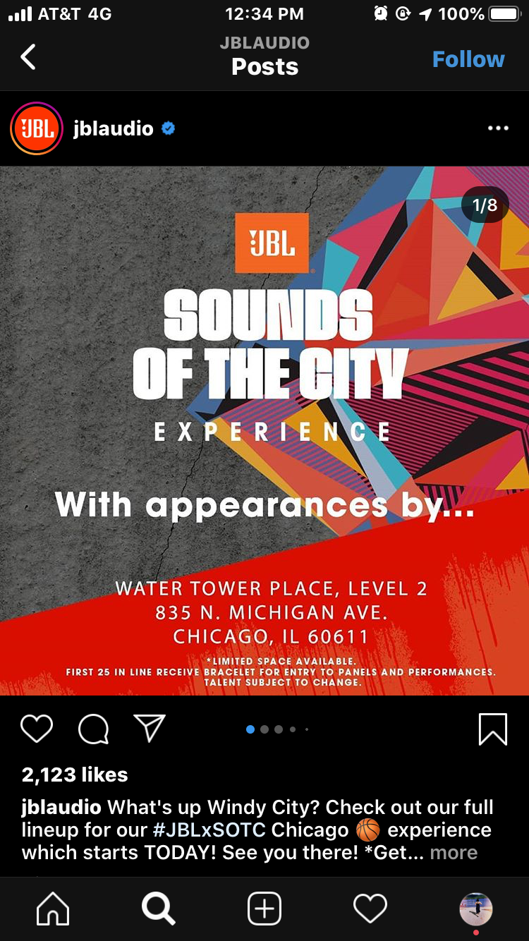 The event was held by JBL X Sound of The City. NBA players participated in the event to connect with their fans. They also curated their own Spotify music playlists, sharing their favorite songs. The event took place in Chicago and was promoted extensively through an instagram digital campaign.
